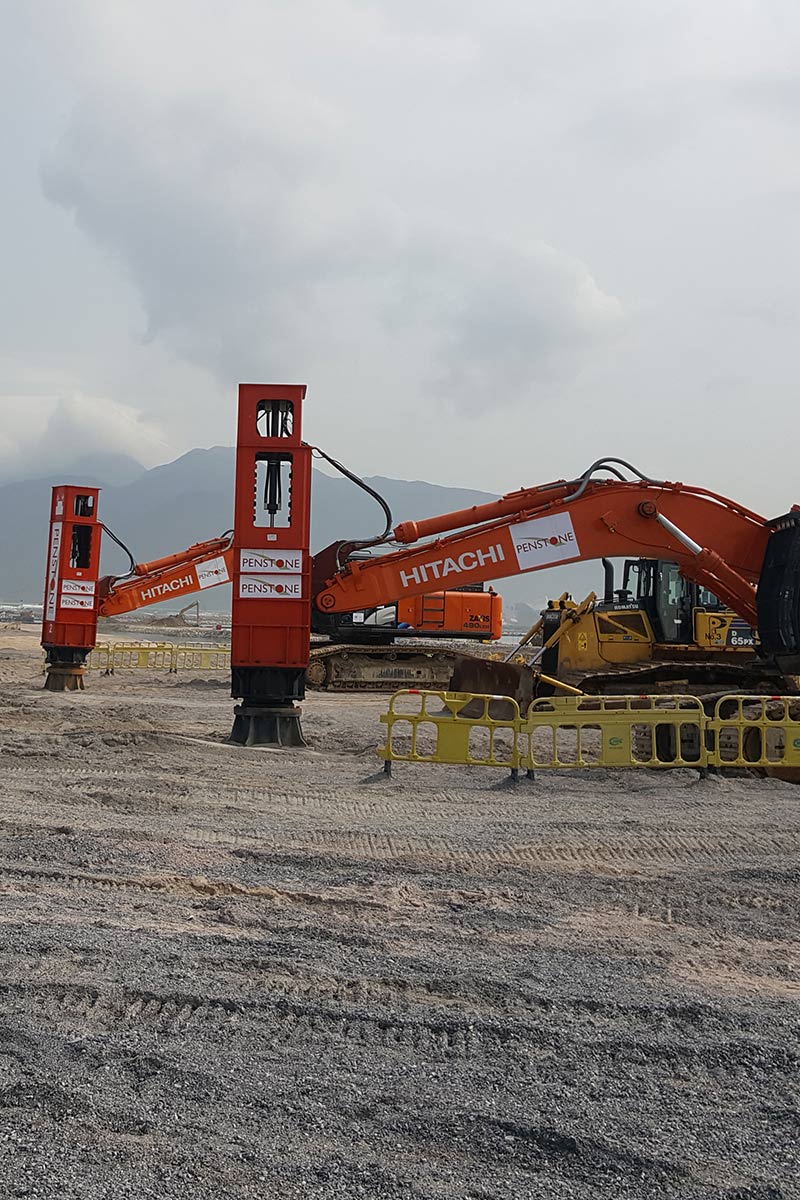 配有多種點、線、面及特殊形狀的夯實搗固輔具,可360度回轉,適用于多種地形及多種作業方式可完成平面夯實、斜面夯實、臺階夯實、溝槽凹坑夯實、管側夯實及其它復雜基礎的夯實及局部搗固處理。可直接用于打樁,安裝夾具后可用于打拔樁、破碎等。